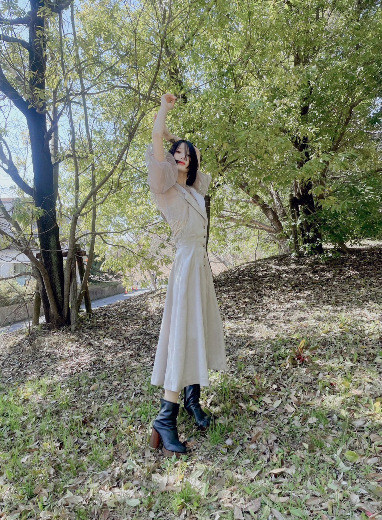 繊細なチュールレースで仕立てたバルーン袖のブラウス